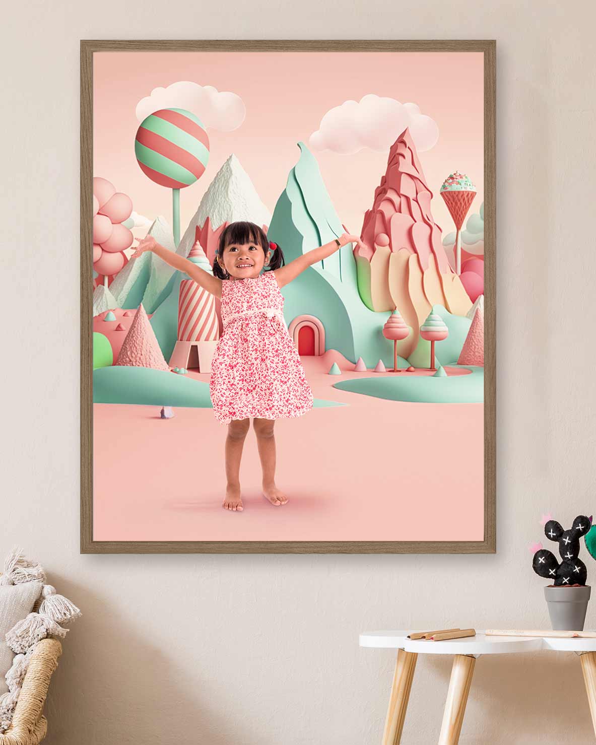Denne plakaten passer best for bilder som er tatt av stående eller sittende barn.