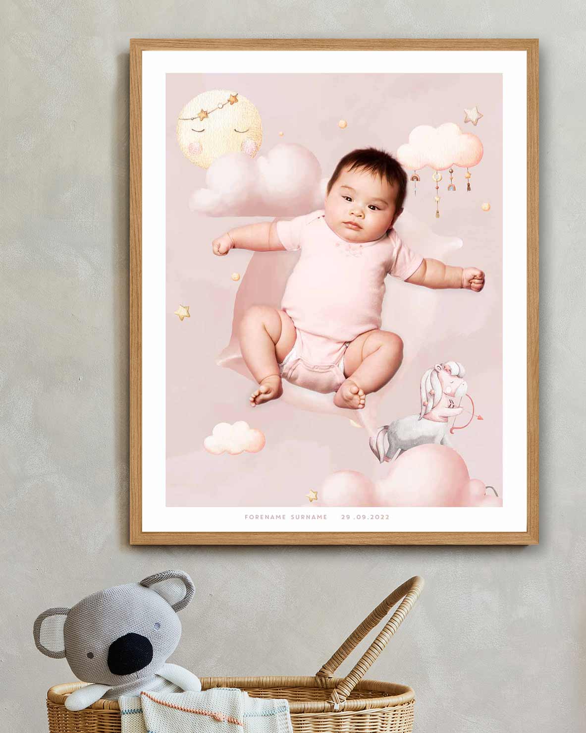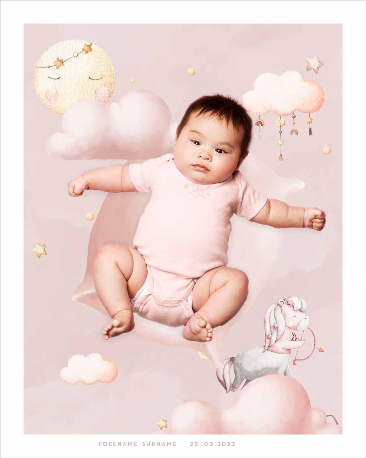 Tilpass med eget navn, fødselsdato og bilde av barnet.