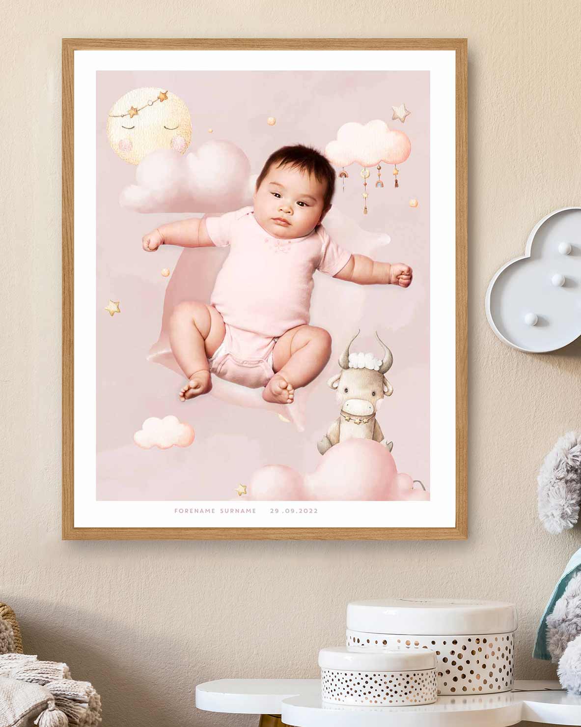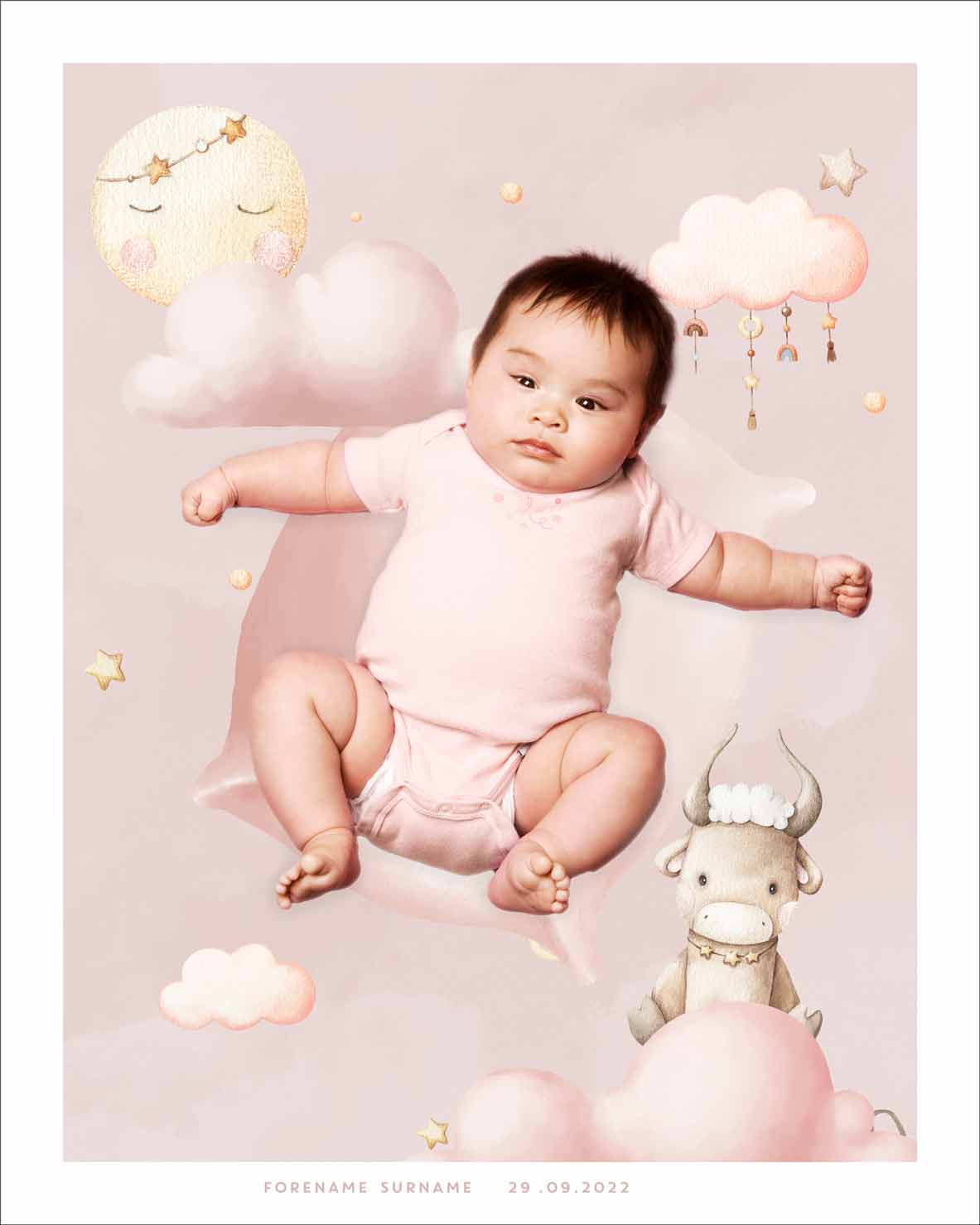 Tilpass med eget navn, fødselsdato og bilde av barnet.